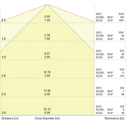 Der Abstrahlwinkel bezeichnet den Winkel, in dem das Licht aus der Lichtquelle ausgestrahlt wird. Er wird in Grad (D) angegeben. Je geringer die Gradzahl des Abstrahlwinkels ist, desto kleiner ist auch der Durchmesser des Lichtkegels, den die Lichtquelle produziert.
