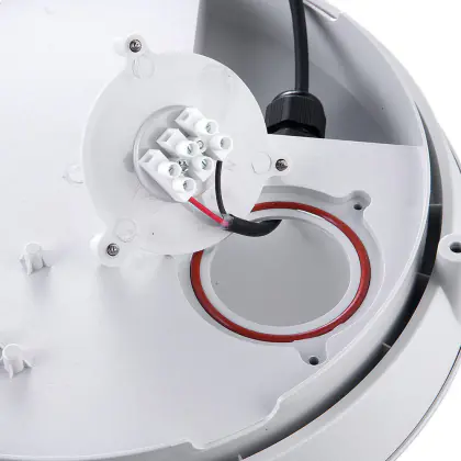 Die LED hat darüber hinaus ein kaltweisses Licht (4.000 K) und sorgt für ein konzentriertes Arbeitsumfeld. Ausserdem ist die Leuchte mit einem Notfallmodul ausgestattet und kann damit auch als Notfallbeleuchtung verwendet werden. Die Leuchtzeit nach einem Stromausfall beträgt 1 Stunde. Sie ist IP66 und IK10 klassifiziert und kann damit sowohl im Innen- als auch im Aussenbereich verwendet werden.