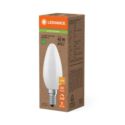 Ledvance Classic LED E14 Kerze Matt 2.5W 470lm - 827 Extra Warmweiß | Dimmbar - Ersatz Für 40W