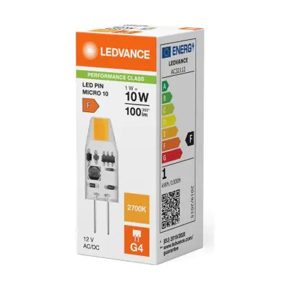 Ledvance LED Pin Micro 12V G4 Klar 1W 100lm - 827 | Ersatz Für 10W