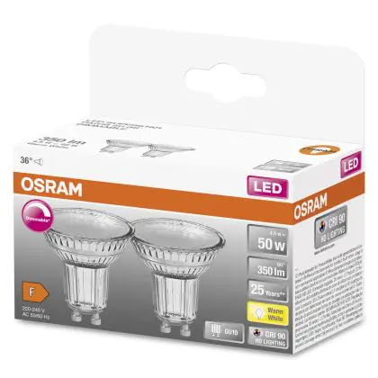 Osram Superstar LED GU10 Spot 4.5W 350lm - 927 | Dimmbar - Höchste Farbwiedergabe - 2er-Set- Ersatz für 50W