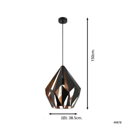 Eglo Suspension Luminaire Carlton 1 Noir, Cuivre | Convient pour E27