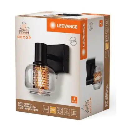 L’applique murale LED Ledvance LED Decor Spot Firefly Échantillon Noir 2.8W 250lm - 827 | Dimmable est le luminaire idéal pour l’éclairage des endroits domestiques pouvant être humide et poussiéreux. Avec son indice de protection IP20, ce luminaire peut résister aux jets d’eau et à la poussière. On retrouve très souvent ce type d’éclairage dans les parkings, les cages d’escaliers, les halls d’immeubles… Ledvance propose une applique murale disposant de la technologie LED Intégré, vous permettant ainsi d’avoir un luminaire avec un faible impact sur l’environnement et capable de tenir jusqu’à 15000 heures.