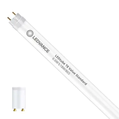 Ce tube LED Lot 10x Ledvance Tube LED T8 Value (EM/Direct 230V) Standard Output 6.6W 800lm - 865 | 60cm - Remplacement 18W est l’un des produits les plus éconergétiques en remplacement des tubes T8 classiques. Avec ce tube LED vous êtes donc assuré de sa qualité. Avec une puissance de seulement 6.6 W, ce tube LED a la même intensité lumineuse qu’un tube classique qui consomme 18 W.