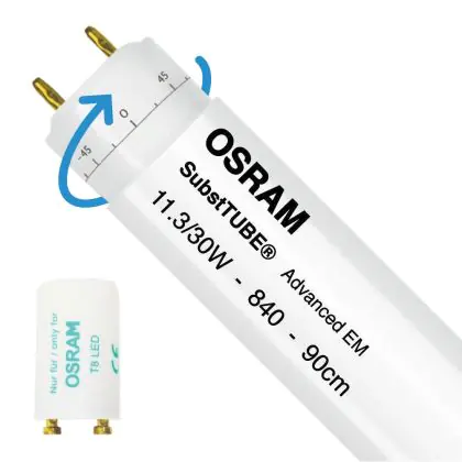 Ce tube LED Osram tube LED 90cm | 4000K 11.3W - Advanced est l’un des produits les plus éconergétiques en remplacement des tubes T8 classiques. Avec ce tube LED vous êtes donc assuré de sa qualité. Avec une puissance de seulement 11.3 W, ce tube LED a la même intensité lumineuse qu’un tube classique qui consomme 30 W.