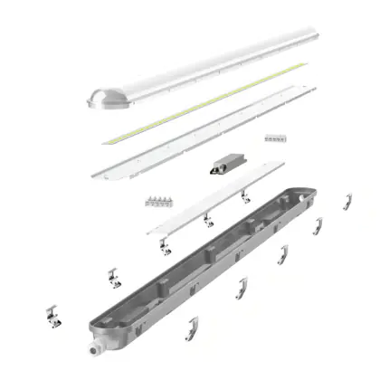 La réglette LED, Réglette LED Étanche V2.0 43W 6000lm - 840 | 150cm - Câblage Traversant (5x2.5mm2) - Dali Dimmable est conçue pour remplacer les réglettes TL-D traditionnelles et permettant d’économiser jusqu’à 50% d’énergie. Très souvent utilisé pour l’éclairage d’entrepôts, d’usines, de parking et d’autres grands espaces extérieurs. Très simple d’installation, cette réglette de 150cm peut se fixer au plafond et au mur et projette 4000K - Blanc Froid, comme couleur de lumière. La Réglette LED Étanche V2.0 43W 6000lm - 840 | 150cm - Câblage Traversant (5x2.5mm2) - Dali Dimmable dispose d’un indice de protection IP65 à l’eau et la poussière et d’une résistance aux chocs IK10.